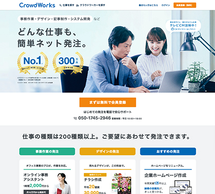 クラウドワークスは、総合型クラウドソーシングサイトです。オンライン上で、在宅ワーカーと仕事発注者のマッチング、業務の遂行、報酬の支払いまでを一括で行うサービスを提供しています。時間単位で仕事の受発注ができる「時給制」と、プロジェクト単位で受発注できる「固定報酬制」の2つの方式を採用しているので、自分に合った働き方が選べます。